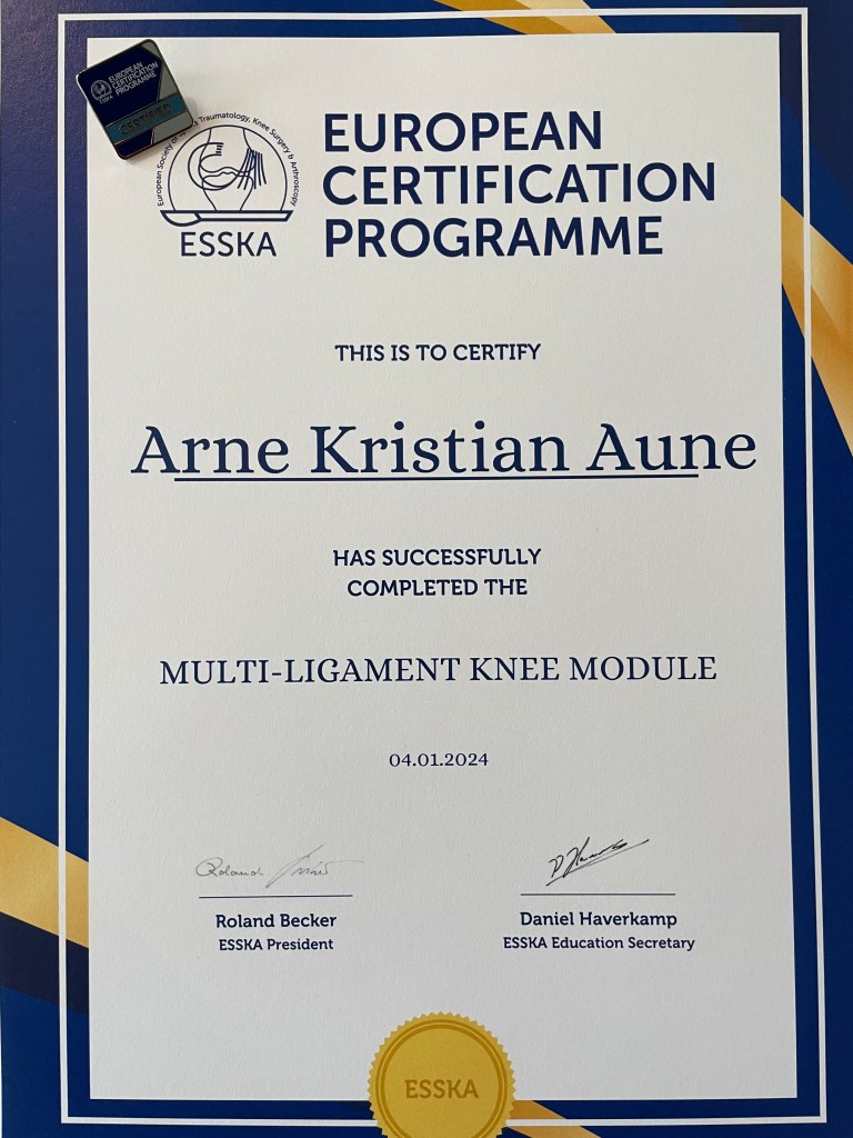 MD PhD Arne Kristian Aune is an internationally recognized orthopedic surgeon who specializes in disorders of the shoulder, hip and knee, especially sports related injuries. He is a member of the ACL Study Group and the European Society of Sports Traumatology Knee Surgery and Athroscopy (ESSKA) and has published over 100 scientific articles, abstracts and book chapters on the issue. His research group won the Houghston award for best paper in the American Journal of Sports Medicine in 2017.