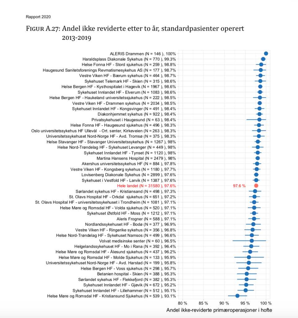 Aune og Aleris Drammen best i landet på hofteproteser i følge Nasjonalt kompetansesenter.
